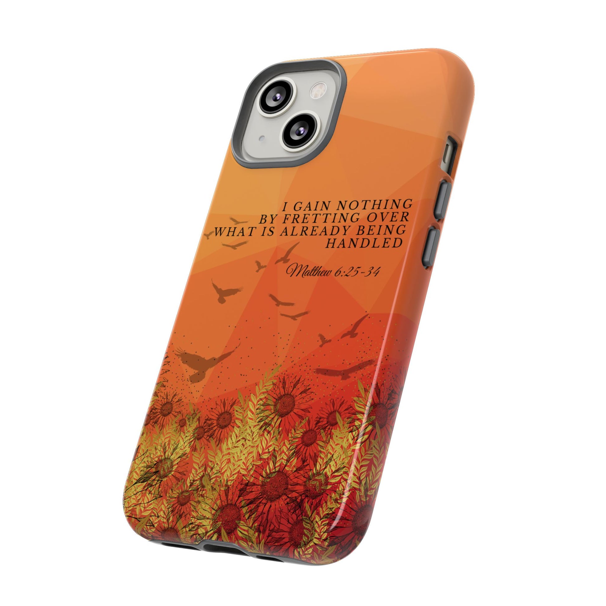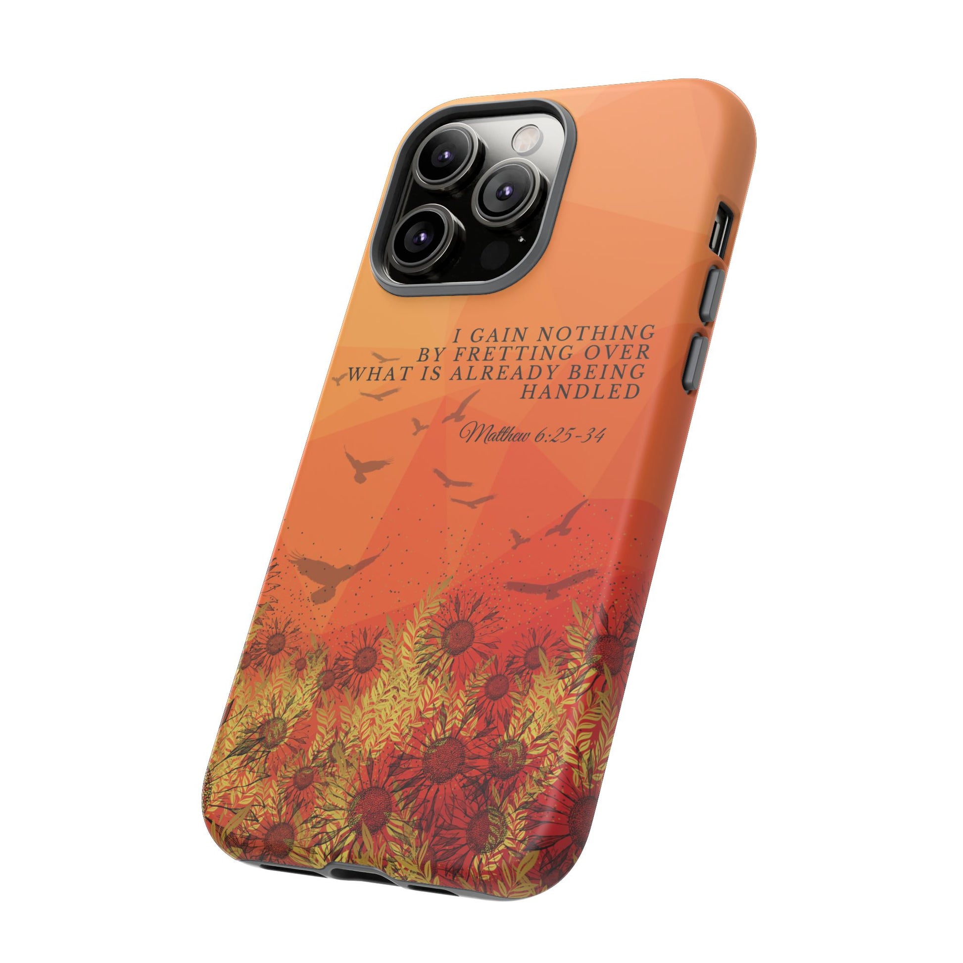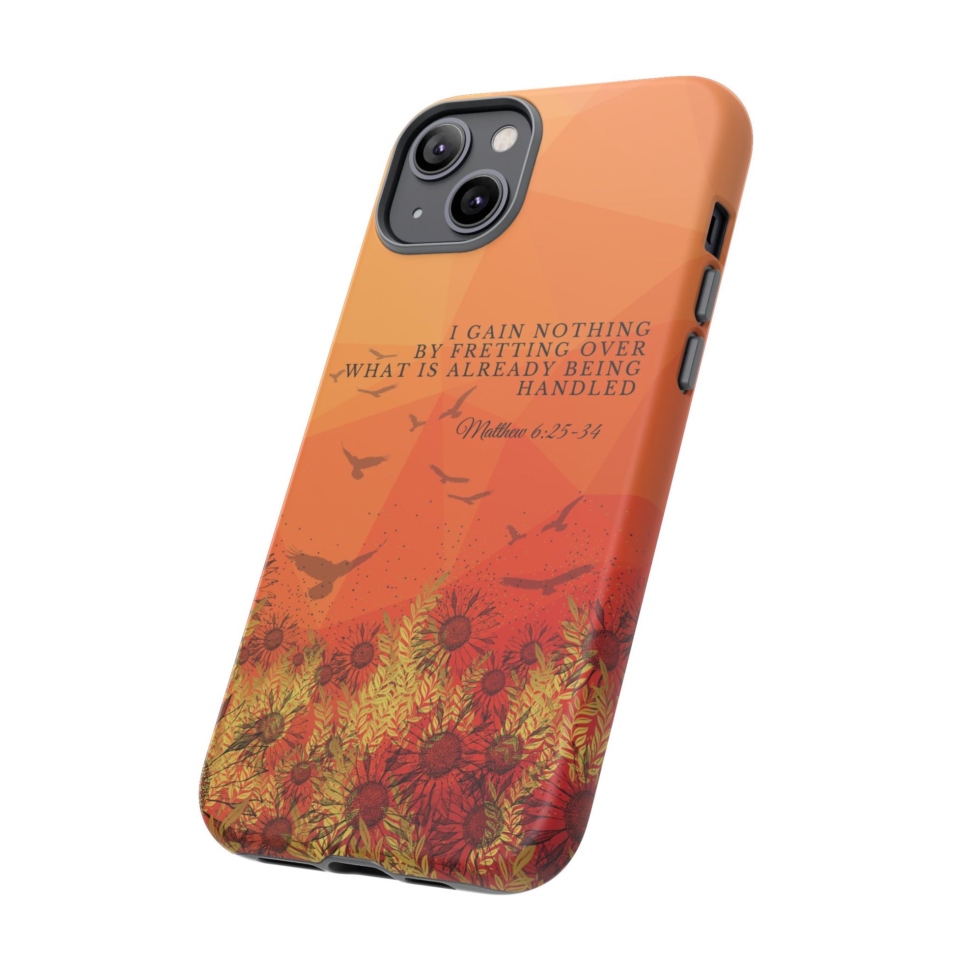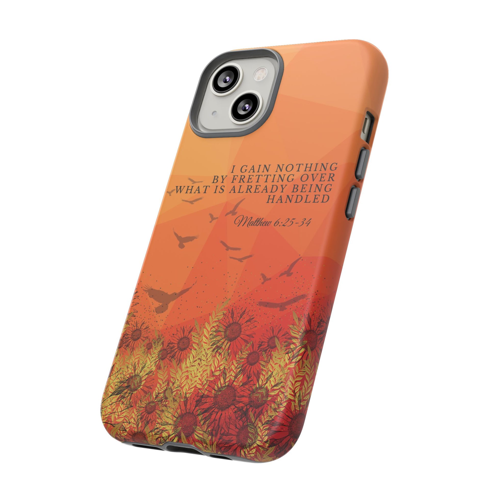Based on Matthew 6:25-34, the 'I Gain Nothing by Fretting' Christian Phone Cases serve as a constant reminder to trust in God's provision. Jesus' words in this passage encourage us not to worry about our lives, but to have faith that our Heavenly Father knows and cares for our needs. These Bible quote phone cases capture this powerful message, urging you to let go of anxieties and trust in God's control. Available for Pixel, Samsung, and iPhone, these cases are crafted with a dual-layer design for added durability. Choose from a glossy or matte finish and carry this truth with you, allowing your phone case to be a beacon of faith and a source of peace amid life's worries.
