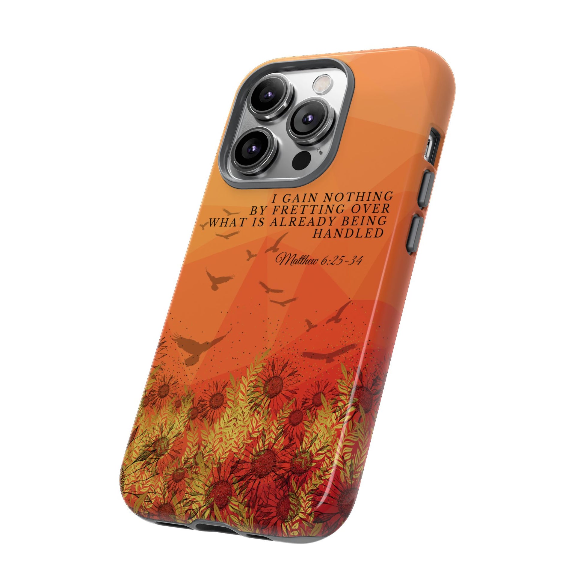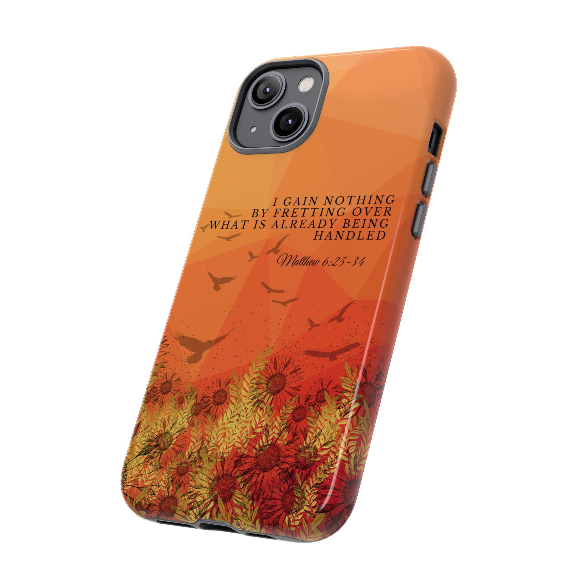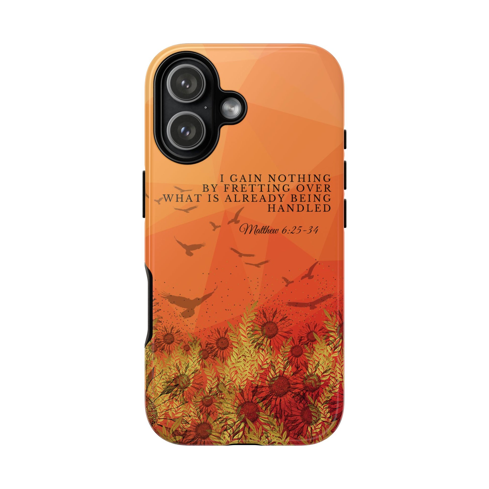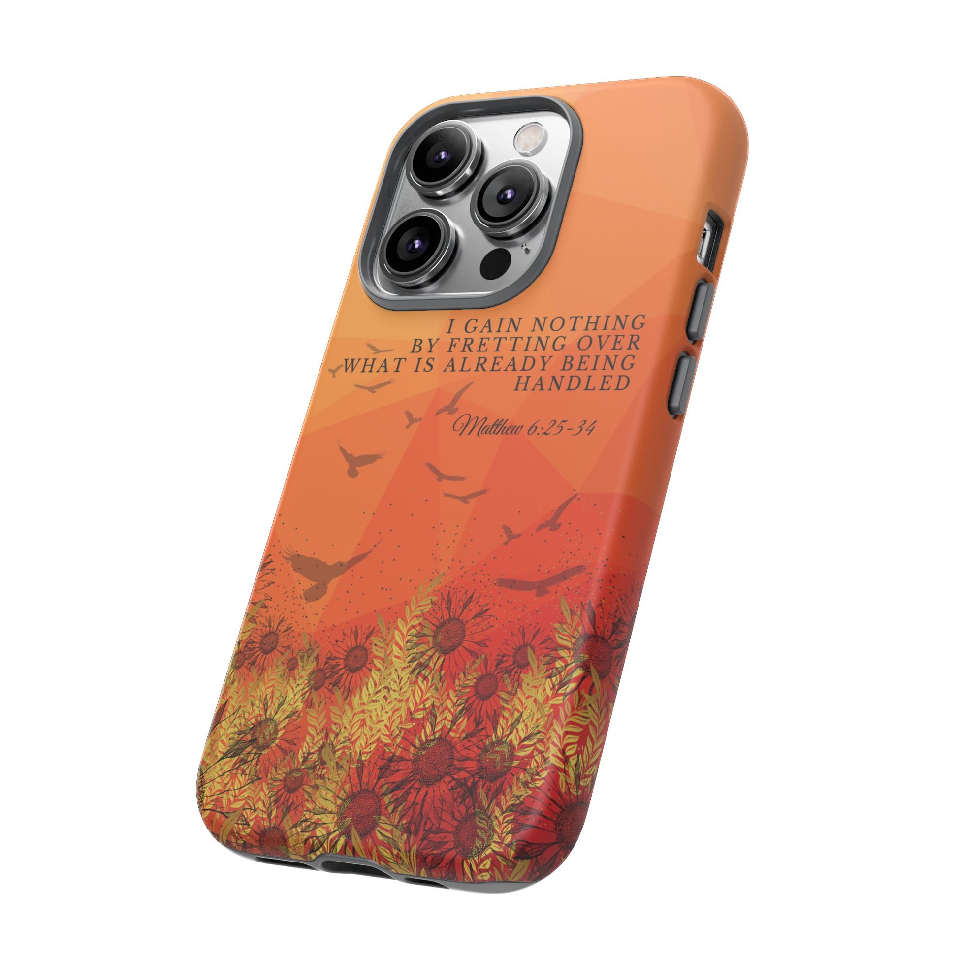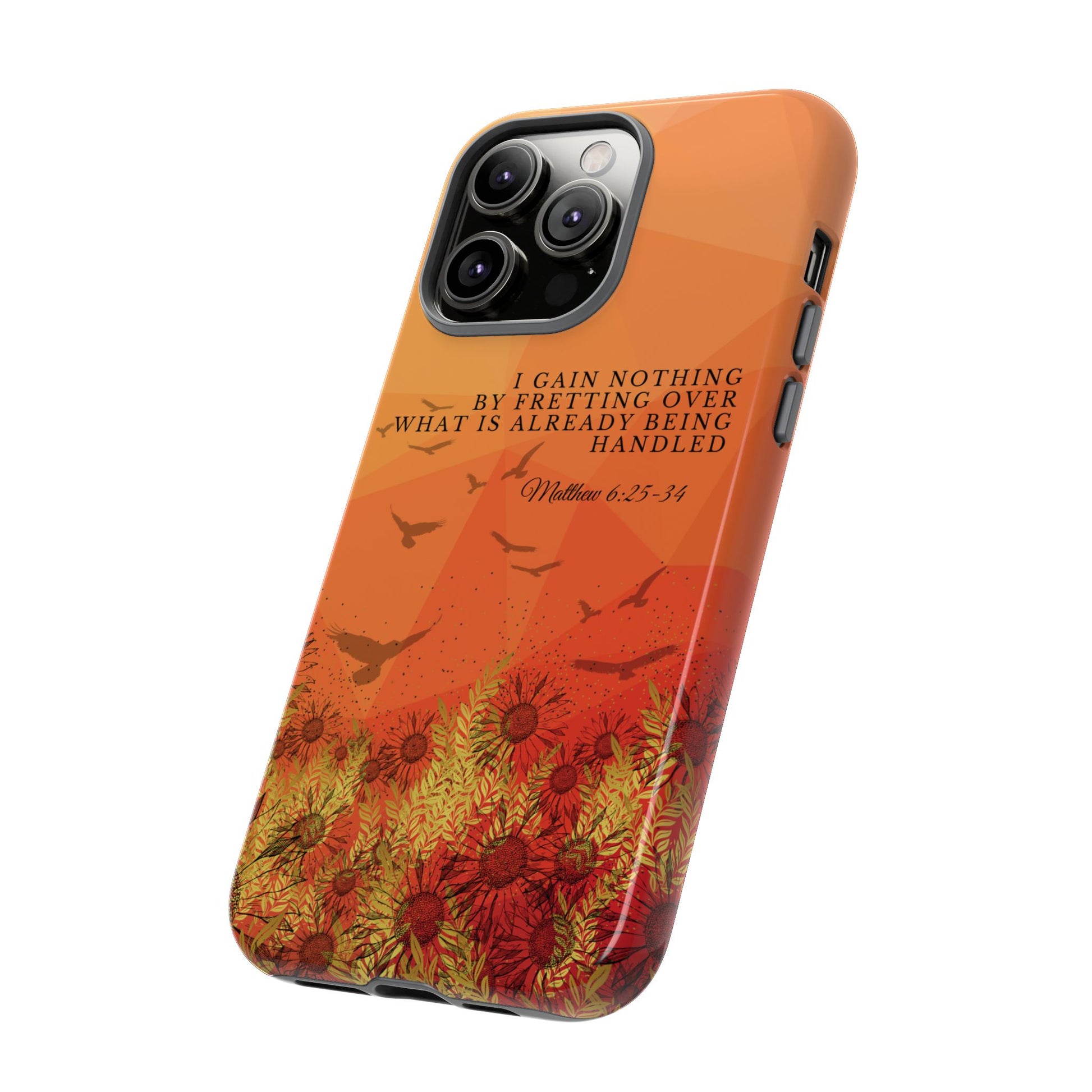 Based on Matthew 6:25-34, the 'I Gain Nothing by Fretting' Christian Phone Cases serve as a constant reminder to trust in God's provision. Jesus' words in this passage encourage us not to worry about our lives, but to have faith that our Heavenly Father knows and cares for our needs. These Bible quote phone cases capture this powerful message, urging you to let go of anxieties and trust in God's control. Available for Pixel, Samsung, and iPhone, these cases are crafted with a dual-layer design for added durability. Choose from a glossy or matte finish and carry this truth with you, allowing your phone case to be a beacon of faith and a source of peace amid life's worries.