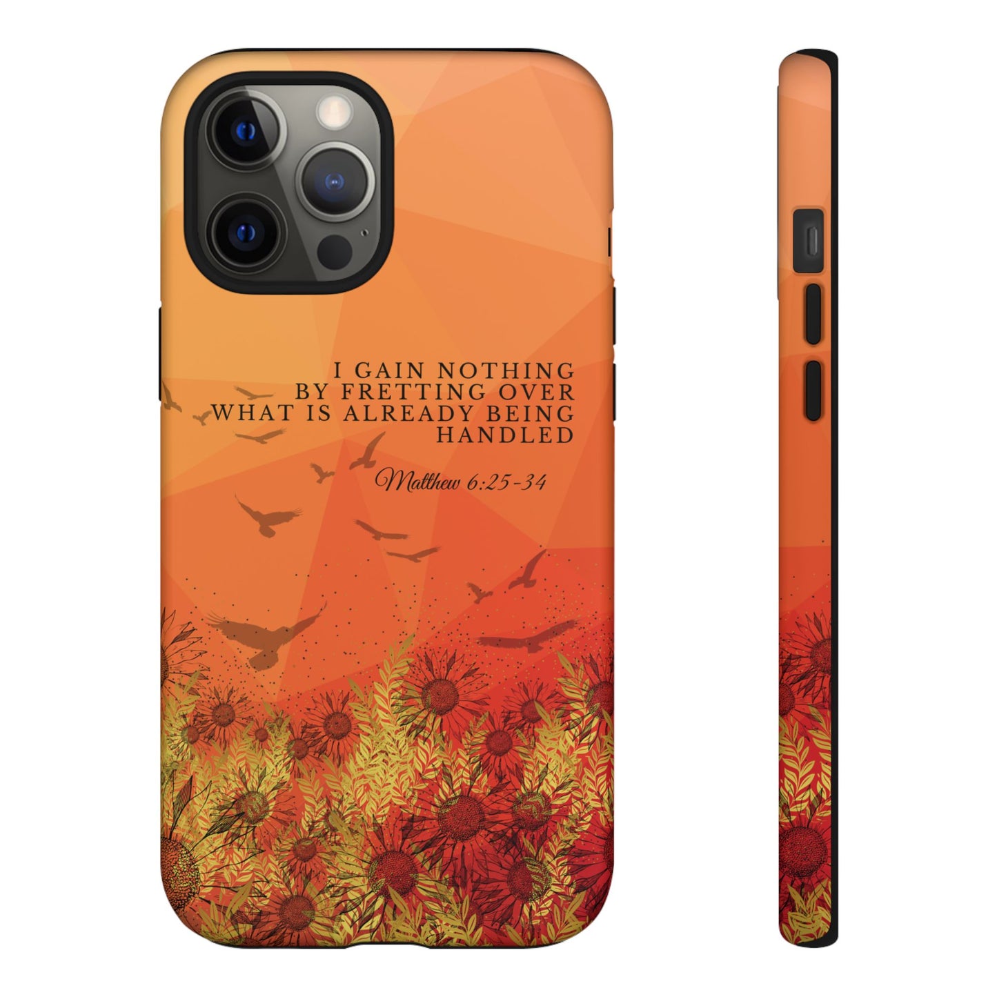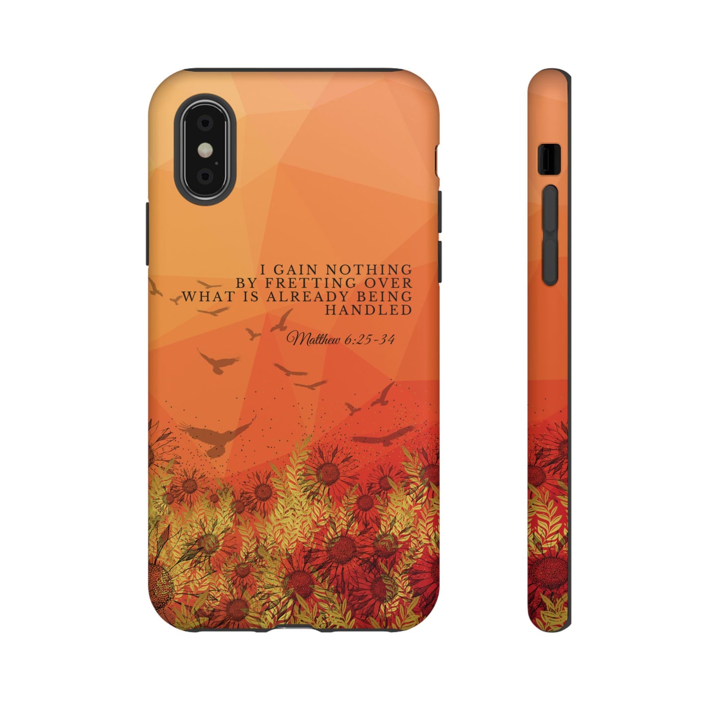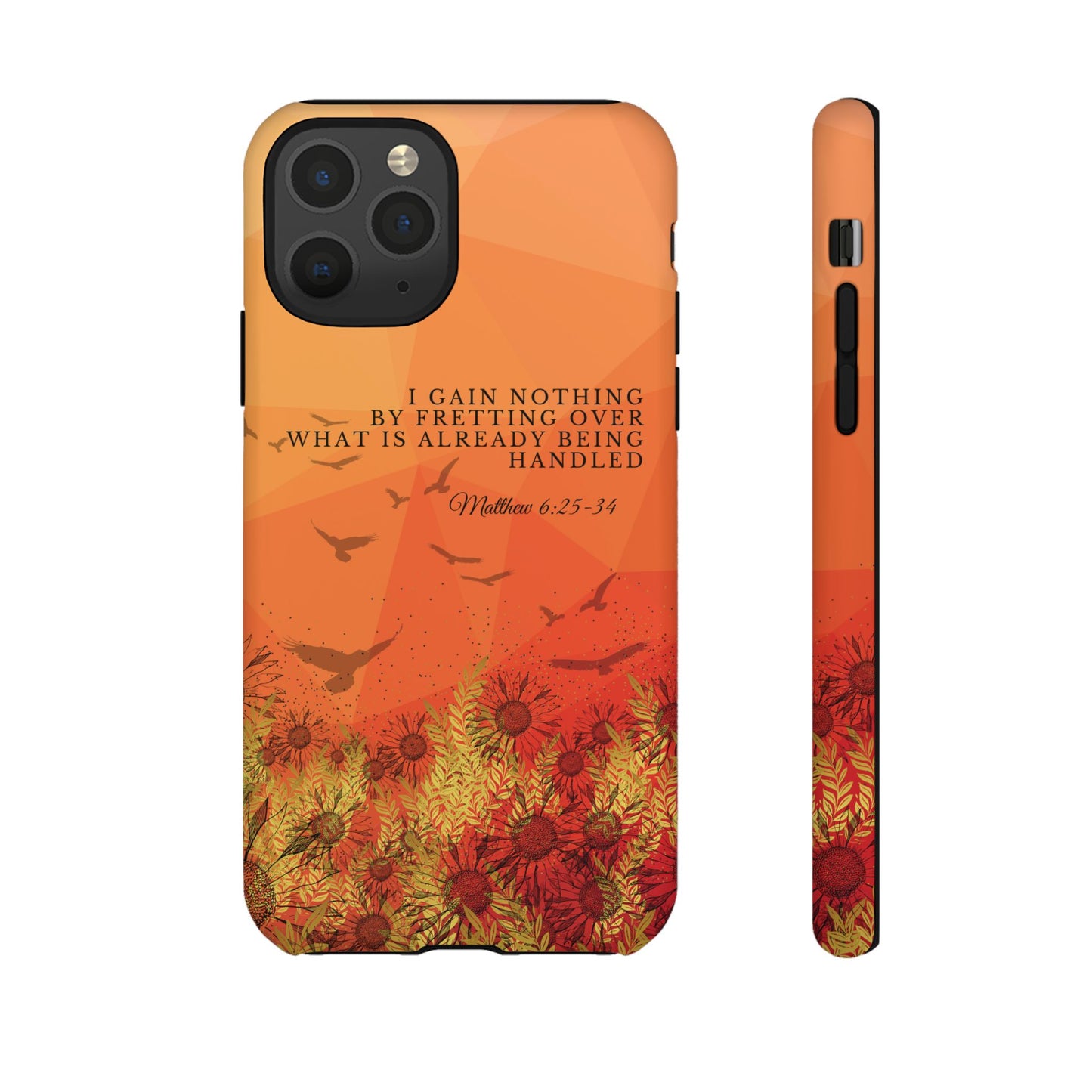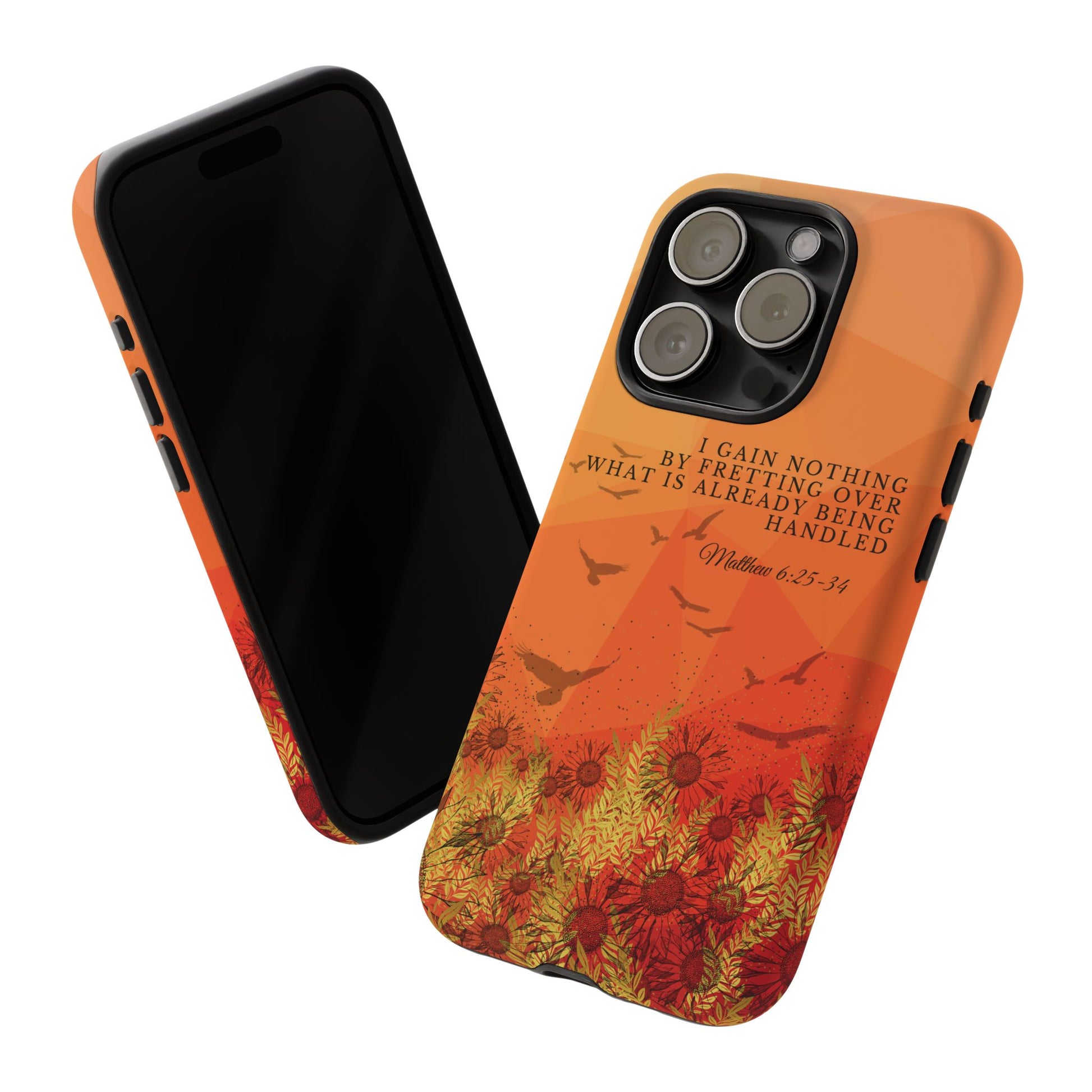 Based on Matthew 6:25-34, the 'I Gain Nothing by Fretting' Christian Phone Cases serve as a constant reminder to trust in God's provision. Jesus' words in this passage encourage us not to worry about our lives, but to have faith that our Heavenly Father knows and cares for our needs. These Bible quote phone cases capture this powerful message, urging you to let go of anxieties and trust in God's control. Available for Pixel, Samsung, and iPhone, these cases are crafted with a dual-layer design for added durability. Choose from a glossy or matte finish and carry this truth with you, allowing your phone case to be a beacon of faith and a source of peace amid life's worries.