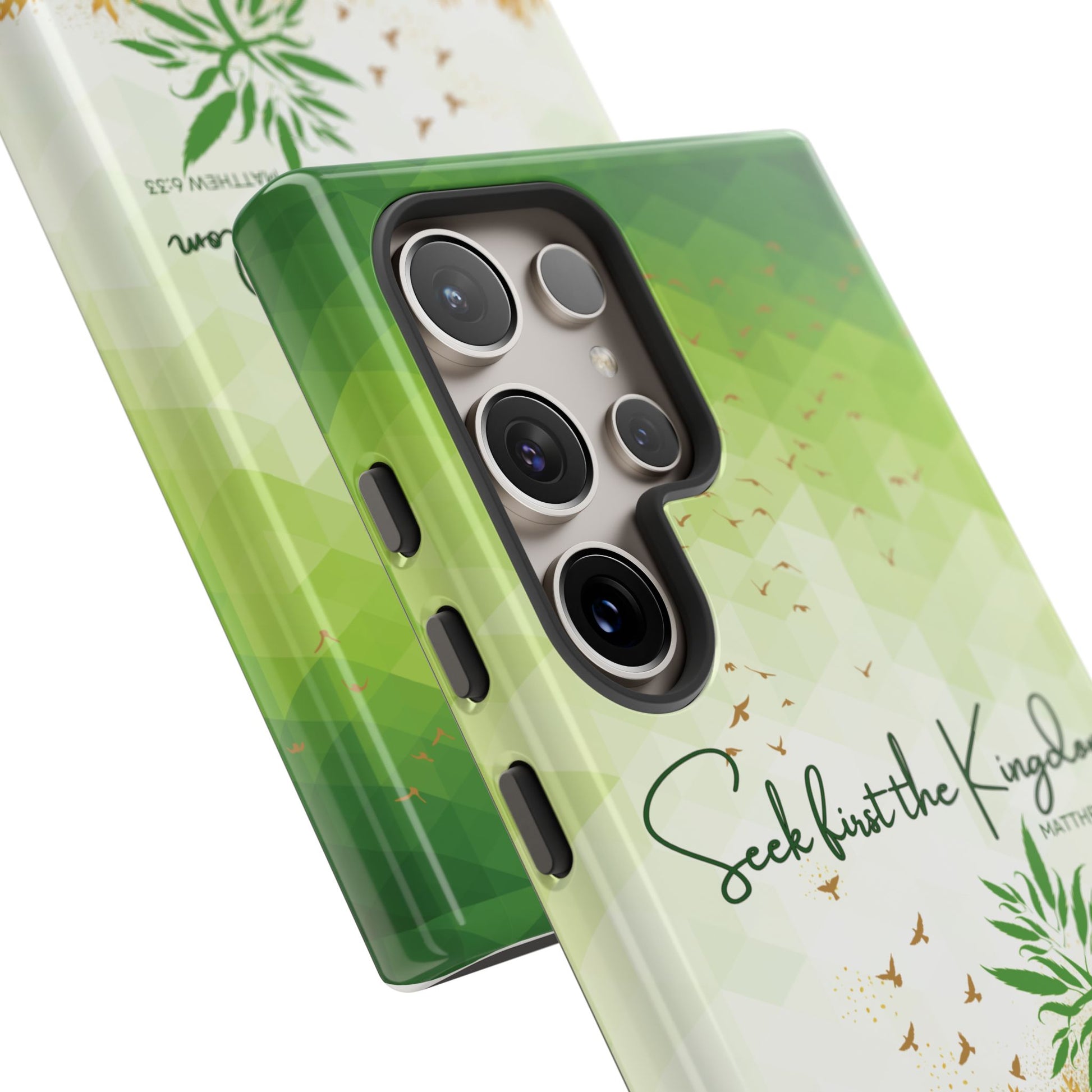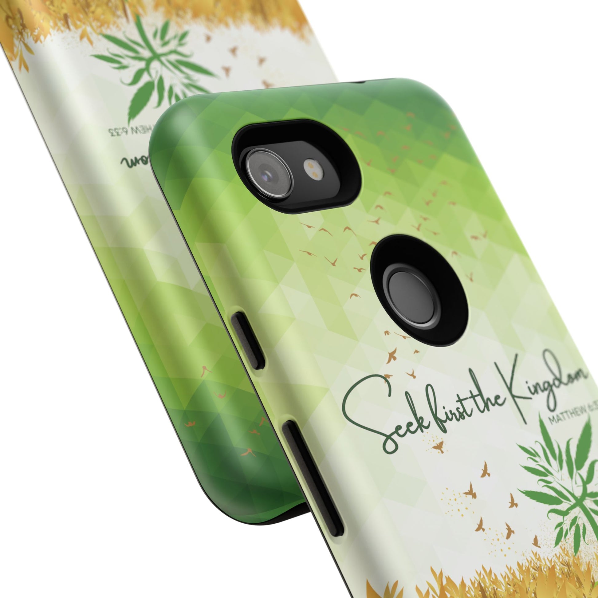 Embrace the Wisdom of Matthew 6:33 with the `Seek first the Kingdom` Pixel & Samsung Cases. This case is part of the Heavenly Guard Christian Phone Cases collection, featuring double layers for ultimate durability and protection. The inspiring message encourages you to prioritize your relationship with Christ, trusting that everything else will fall into place according to His divine plan.